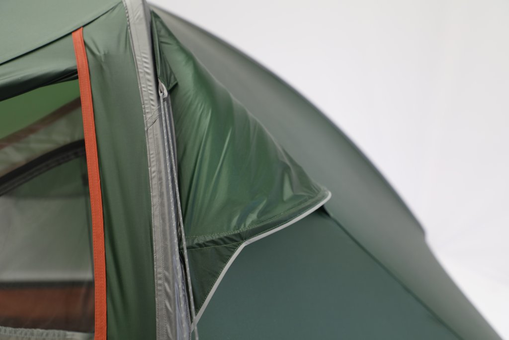 - Double porch on each side of the tent provides sheltered space to store gear
